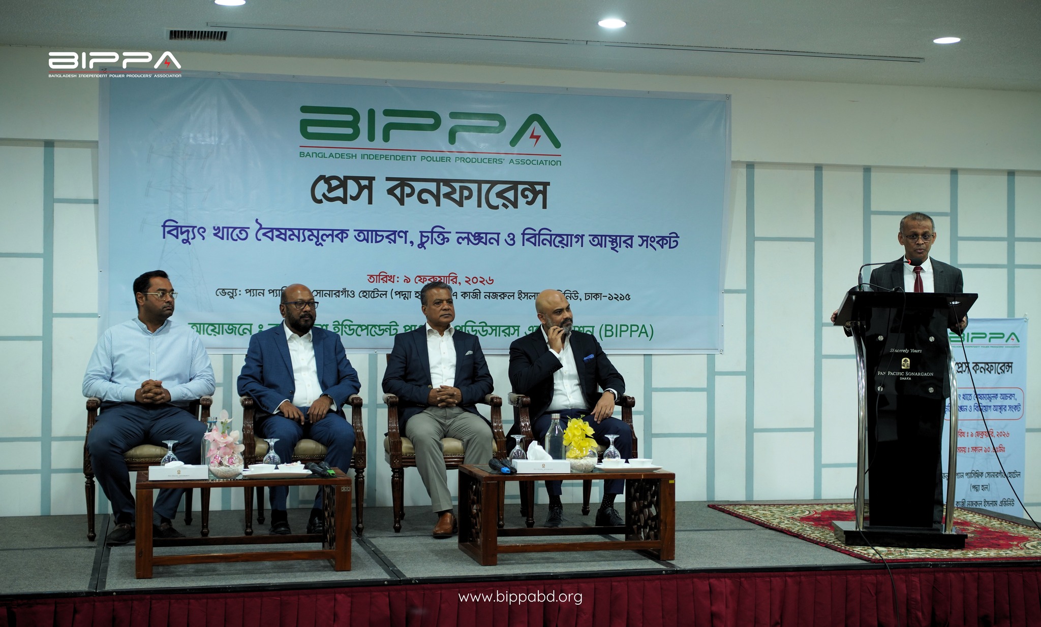 ৯ ফেব্রুয়ারি ২০২৬; সোমবার রাজধানীর একটি হোটেলে সংবাদ সম্মেলনের মাধ্যমে এসব তথ্য তুলে ধরেন বেসরকারি বিদ্যুৎকেন্দ্র মালিকদের সংগঠন বাংলাদেশ ইন্ডিপেন্ডেন্ট পাওয়ার প্রডিউসারস এসোসিয়েশন (BIPPA)। এ সময় উপস্থিত ছিলেন সংগঠনটির সভাপতি ডেভিড হাসানাত, সাবেক সভাপতি ইমরান করিম, ভাইস প্রেসিডেন্ট নাভিদুল হক ও পরিচালক ফয়সাল আহমেদ চৌধুরী।